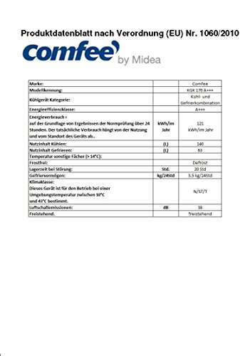 Description : Comfee KGK 170 A+++, Gerätehöhe: 170 cm Edelstahlfront