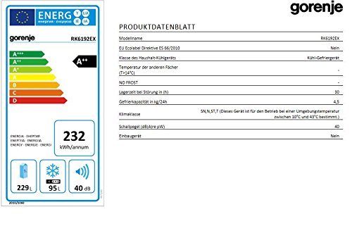 Gorenje RK 6192 EX Kühl-Gefrier-Kombination / A++ / Höhe 185 cm / Kühlen 229 L / Gefrieren 95 / LED Beleuchtung / Edelstahl / Anti-Fingerprint-Beschichtung